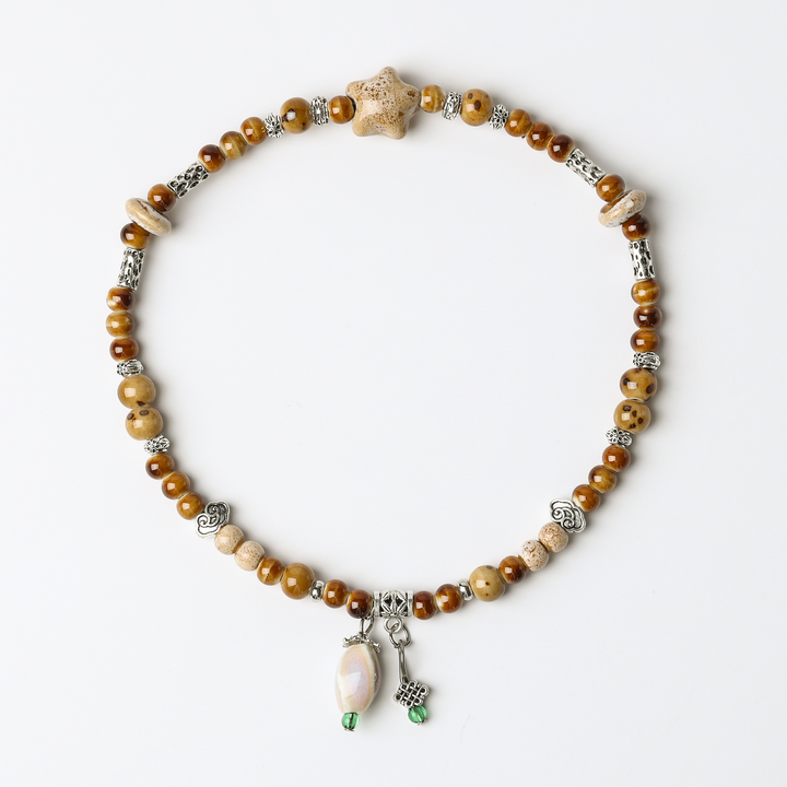 This double - loop bracelet is made of ceramic beads, featuring beach - inspired elements. Ceramic, representing the integration of art and nature, carries the relaxed and free spirit of the beach. The double - loop design symbolizes the ebb and flow of the tides, implying embracing the beauty of nature and enjoying a leisurely life. Wearing it, you'll feel the charm of the beach and add a touch of casual elegance to your style.
