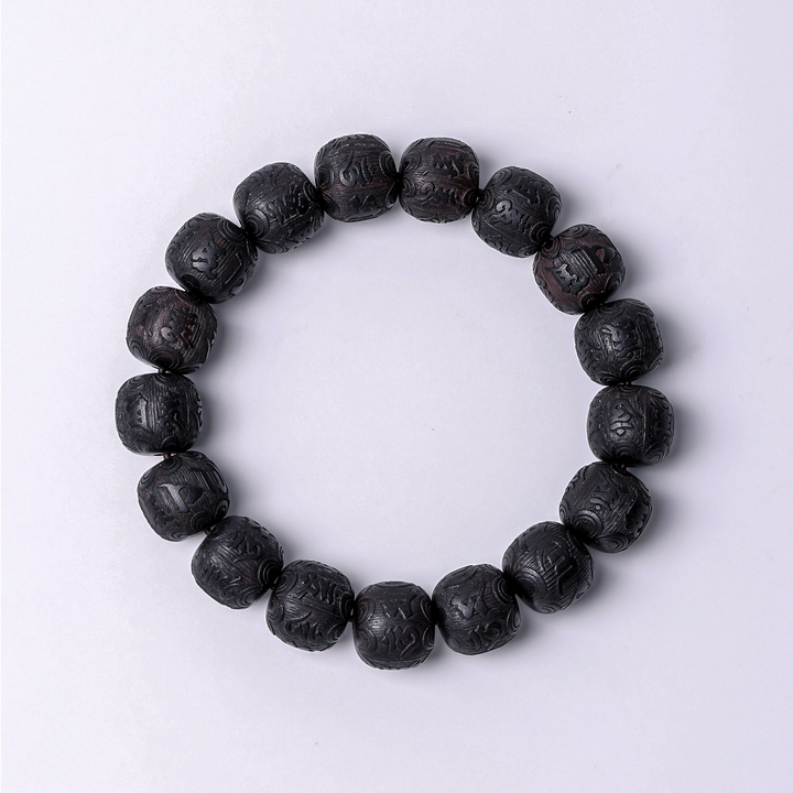 Selected high - quality ebony, with each bead exquisitely engraved with the sacred six - character mantra. Ebony emits a serene fragrance, which can purify energy and calm the mind; the mantra implies praying for blessings, infusing auspiciousness into daily life. Whether you pursue spiritual cultivation or love a unique style, this string of prayer beads is a classic choice.