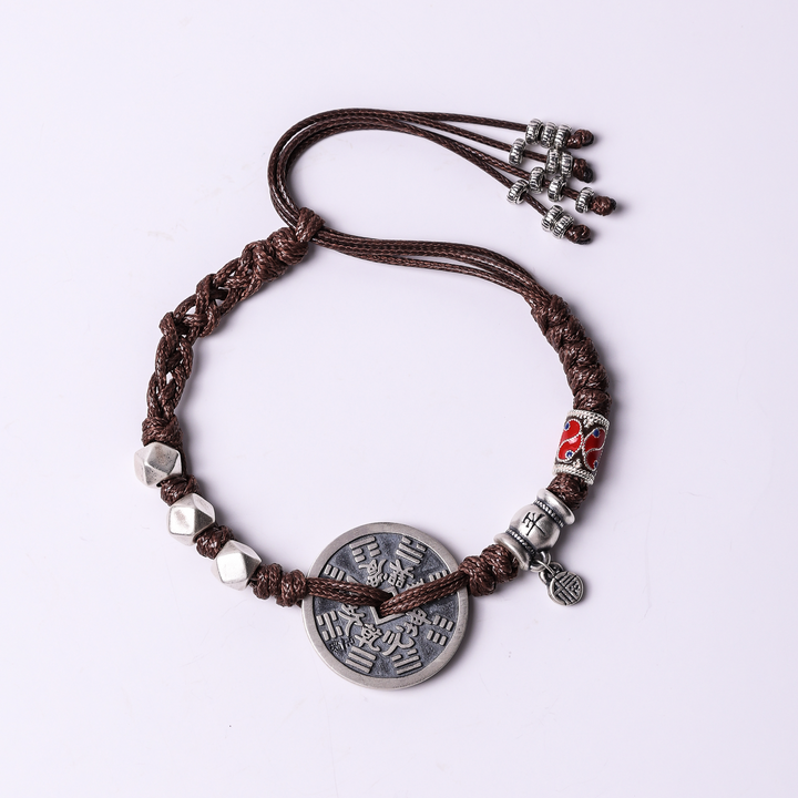 Silver Mountain Spirit Coin Bracelet establishes a metal-dominated energy system with Gold (Metal) as core and Earth as secondary element, achieving the balance of "edge protection + foundation stabilization":